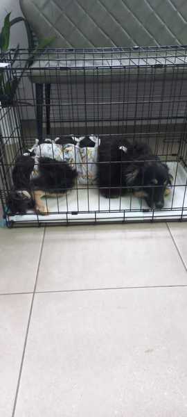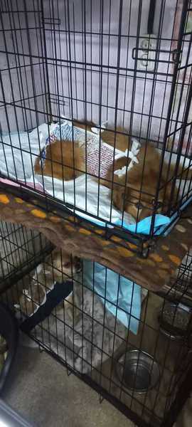 Hier schauen Beppi und Gordon aus ihren Käfigen, nachdem sie von der Klinik abgeholt werden konnten. Alles verlief bei den Kastrationen gut.