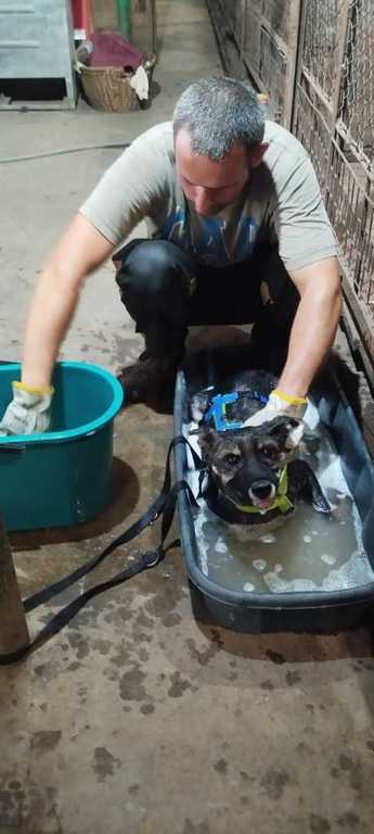 Der Rüde kam dorthin, weil man ihn zusammen mit Sperrmüll auf die Mülldeponie schmiss. Grisha wurde dort aufgegriffen und kam dann ins städtische Tierheim.