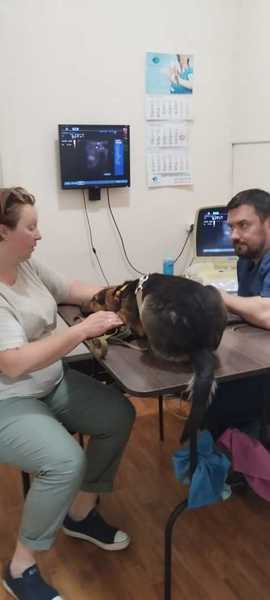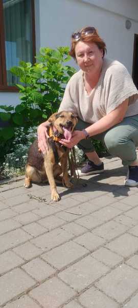 Die Hündin wurde dann erst einmal notversorgt, man gab ihr einen warmen Platz, ließ sie sterilisieren und fütterte sie regelmäßig. Später informierte man unsere Helfer, die Ena auf eine zuverlässige Pflegestelle nahe Chmelnitzkij brachten.