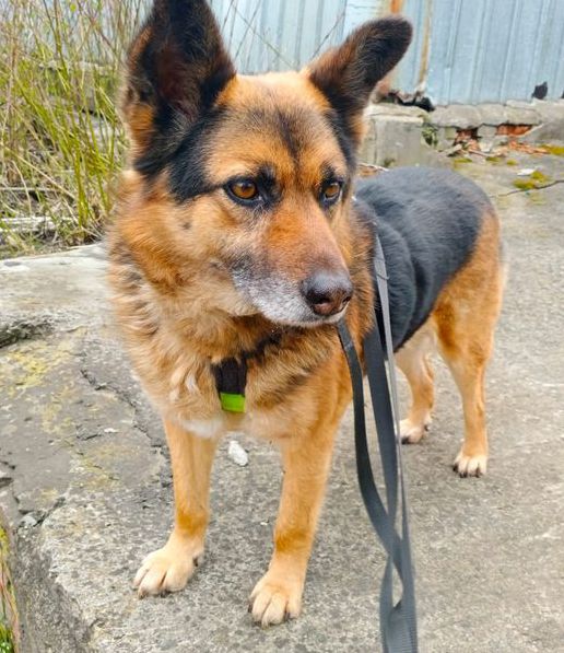 Morty war sein Leben lang an der Kette und bewachte mit anderen Hunden einen Parkplatz. Luda kümmerte sich schon seit Jahren um ihn, brachte ihm täglich Futter und